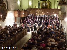 Mit Kantaten für den 1. Weihnachtstag 1753, den Neujahrstag 1741 und zu Epiphanias 1731 sollte es nach der Pause eine Steigerung geben. Dafür sorgten zunächst einmal die vier Pauken – auch als Melodieinstrument, die 2 Hörner in der ersten Kantate und die Trompeten in den letzten beiden Kantaten. Dominik Wörner (Bass) wusste schon von Anfang an durch seine klare, raumfüllende Gestaltung zu überzeugen. Monika Mauch (Sopran) bezauberte mit ihrer schlanken klaren und zu Herzen gehenden Stimme durch makellose Kolloraturen. Georg Polutz (Tenor), lupenrein in den Rezitativen und Duetten, erhielt nun endlich in der letzten Kantate auch seine Arie, begleitet von der virtuos gestaltenden Solovioline der Konzertmeisterin. Das Orchester spielte stets engagiert und klangschön in barocker Manier auf den Affekt des Textes ausgerichtet.