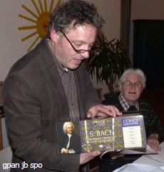 Für 30 Jahre treuer und nachhaltiger Arbeit in vielfältiger Weise, wie der Erneuerung von Kirche und Orgel sowie dem Turmbau, bedankte sich der Förderverein bei seinem KMD und stellvertretenden Vorsitzenden: „Deine Arbeit hat uns viel Großartiges in all den Jahren beschert.“ Hans Peter Honecker überreichte dem sichtlich erfreuten Christoph Jensen 157 CDs mit den über 1100 Werken von Johann Sebastian Bach in einer Komplett-Edition. Kein anderes Geschenk wäre passender gewesen.
