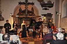 „Hoffentlich wissen die St. Peteraner das zu schätzen.” Margarete Schütz, inzwischen 95 Jahre alt, treuer Gast der Kirchenkonzerte, fasste so ihre Bewunderung für die Solisten der Royal Academy of Musik zusammen, die sich vorgenommen haben, auch das Kammermusik-Repertoire zu pflegen. Eingeleitet wurde der Abend vom Streichquartett Nr.2 op.10 von Zoltán Kodàly (1882-1967). Die vier Streicher Mark Lee, Violine, Tessa Ho, Violine, Clifton Harrison, Viola und Alex Rolten, Violoncello nahmen die Anwesenden mit auf eine Reise zur ungarischen Musik mit Anklängen von Volkstanz, getragenen, schwermütigen Melodien, zarten, liedhaften Teilen, die auf einen rasanten Schluss zusteuerten, ein modern anmutendes, meisterhaft gespieltes Streichquartett!