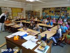 In der vierten Stunde konnte man in der Klasse 1b mit Merle Noack Deutschunterricht mit Fu und Fara erleben. Fröhlich singend „Guten Morgen wünschen wir“ und „Mein bester Freund ist Fu“ schallte es im Klassenraum. Danach war richtiges Sprechen angesagt. In der 2b ging es mit der Schulsozialarbeiterin Sandra Philippsen im Präventionsprojekt „Faustlos“ um Gefühle und um Entscheidungen. Spielerisch erwarben die Kinder hier Kenntnisse und lernten Fairness im Umgang miteinander.