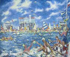 Erich Duggen: „Strandleben in St. Peter-Ording“, 1984/88 auf Öl/Hartfaserplatte (122x150) Geschenk des Künstlers und seiner Ehefrau - Foto- G. Panskus - mit frdl. Genehmigung der gemeindl. Kunstsammlung z. Hd. Eckard Kloth - Foto: G. Panskus
