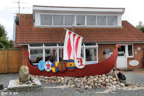 Erhard Schiel hat sich einen weiteren kleinen Traum erfüllt, ein „Wikingerboot“. Ein altes Boot aus Friedrichstadt, das er geschenkt bekam, brachte ihn auf die Idee. Es liegt jetzt umgebaut als Wikingerboot in der Bövergeest leicht schräg auf Steinen, ein weiterer Blickfang vor seiner Galerie. Fachmännische Hilfe erhielt er durch Nachbarn, Schiel selber konzentrierte sich auf die Gestaltung und Bemalung. Symbolisch steht es für Abenteuerlust und Wagnis. „Ich lese viel über das Leben unserer Vorfahren, interessiere mich für Geschichte, auch für die der Wikinger. Sie waren ja nicht nur Krieger und Plünderer, sie waren auch Bauern und Handwerker, Kaufleute und Entdecker. Ohne ihre besonders schönen und technisch ausgereiften Schiffe hätten sie nie ihre weiten Fahrten über die Meere unternehmen können.“