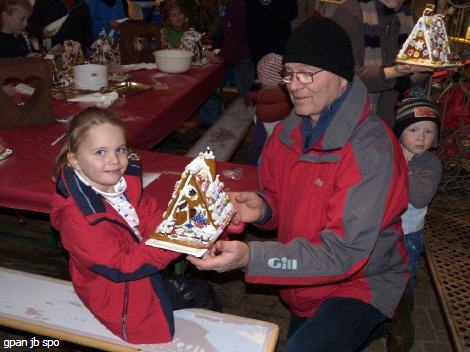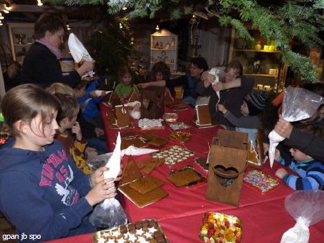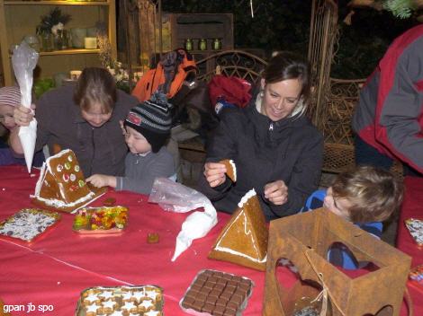 Birte Siercks und Inke Jacobs hatten alles bestens vorbereitet. Lebkuchenwände, Zimststerne, Gummibärchen, Lebkuchen mit Zuckerguss drauf, Schoko-Dominos, Smarties – alles lag portionsgerecht bereit. Die Kinder mussten nur noch zugreifen und konnten bauen. Den kleineren halfen dann Mütter und auch Väter (!) bei der Verzierung mit Zuckerguss aus den Spritztüten. Aber die Kinder hatten das Sagen, wohin die Tupferchen kommen sollten.