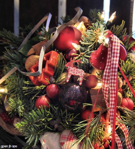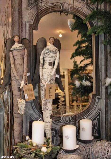 Man kann sich kaum satt sehen an all diesen schön zusammen gestellten Figürchen, Kerzen, Kränzen, Engeln und dergleichen mehr.