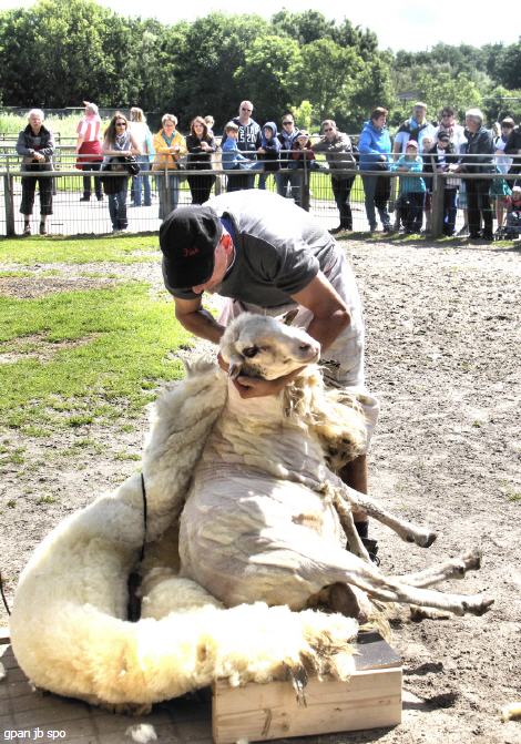 Zum neunzehnten Mal lud der Westküstenpark zum Schaftag ein. Nicht nur der Kreispräsident Albert Pahl war wieder gerne gekommen, auch die neue Lammkönigin freute sich, wieder einmal im Westküstenpark zu sein. Neben den offiziellen Gästen wie dem stellvertretenden Amtsdirektor Wilhelm Bahrenfuß und dem stellvertretenden Bürgermeister Richard Flohrs Richardsen hatten sich viele Besucher bei dem schönen Wetter eingefunden. Sie alle bestaunten die fachmännische Schur der Schafe durch Jörg Gerstenkorn. Beim ersten kleinen bretonischen Zwergschaft - Quessante - hatte er noch leichtes Spiel, denn er hatte nur etwa ein Kilogramm Wolle runter zu scheren. Bei "Bernd", dem zweiten Schaf, einem Bentheimer Landschaf, kam er dagegen schon ins Schwitzen. Etwa vier bis fünf Kilo wog das große Vlies, dass nach der Schur vor der Lammkönigin ausgebreitet wurde.