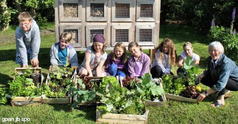 Hausaufgaben für die Ferien? Das machen wir doch gerne! Die Streuobstwiesenkinder der Utholm-Schule zeigen begeistert ihre Gemüsekisten und erklären, was sie da alles gesät und gepflanzt haben: Kohlrabi, Kresse, Pflücksalat, Petersilie oder amerikanischen Kopfsalat, aber auch Kapuzinerkresse, deren Blüten bald schmecken werden. In der Lücke dort waren Radieschen, aber die sind schon aufgegessen. Ja und die Kiste nehmen sie jetzt mit nach Hause in die Ferien und pflegen ihren Minigarten weiter. Diese „Hausaufgaben“ machen sie wirklich gerne. Das bestätigte auch Lehrerin Gönna Ludwig, die von dem Arbeitseifer der Kinder auf der Streuobstwiese schwärmte. „Sie vergessen die Zeit und oft genug beschweren sie sich, dass sie schon nach gefühlten zehn Minuten wieder zur nächsten Stunde in die Klasse gehen müssten.“ Das Projekt „Streuobstwiese“ ist ein Langzeitprojekt und bietet viele Arbeits- und Lernmöglichkeiten für die Schüler, die damit ihr Wissen über Kreisläufe in der Natur “greifbar“ erweitern können.
