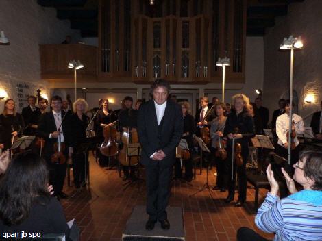 Mit gespannter Aufmerksamkeit erwartete das Orchester seinen Dirigenten und den Solisten des Abends. Still war es in der Kirche geworden, die bis auf den allerletzten Platz besetzt war. Nicht alle Interessierten hatten eine Karte erwerben können.