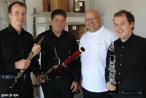 Berliner Bläsertrio mit Küchenchef Axel Kirchner - Sieben Meter über dem Meer: Fabian Schäfer,Oboe, Holger Straube, Fagott, und Tibor Reman, Klarinette.