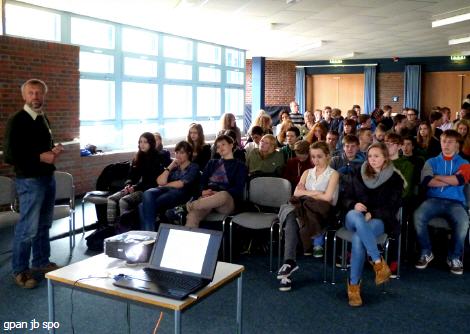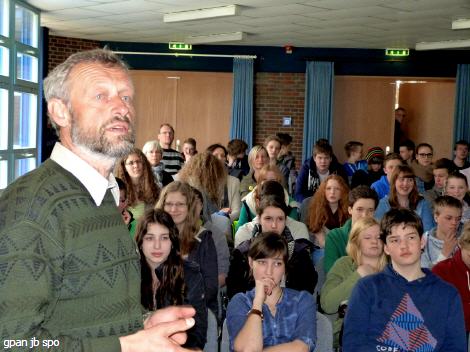 Diplom-Biologe Dr. Walther Petersen-Andresen, Mitglied der Bürgerinitiative gegen CO2-Endlager und hauptberuflich Leiter der Integrierten Station Eider-Treene-Sorge und Westküste (ETSW) in Schlüttsiel (Außenstelle des Landesamtes für Landwirtschaft, Umwelt und ländliche Räume), war in der Nordseeschule St. Peter-Ording zu Gast. Er war gebeten worden, über CCS und Fracking zu informieren. Für diese erstmalig durchgeführte Vortragsveranstaltung im Rahmen des Chemieunterrichtes waren die 9. Klassen des Gymnasialteils und die 10. Klassen des Regionalschulteils mit ihren Fachlehrkräften Dr. Jürgen Neumann, Stephan Lukau und Robert Sonntag gemeinsam in der Aula versammelt. Kohlenstoffdioxid und Energiefragen sind Themen des Unterrichts in diesen Jahrgangsstufen.