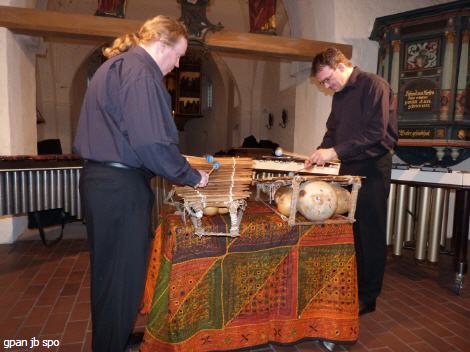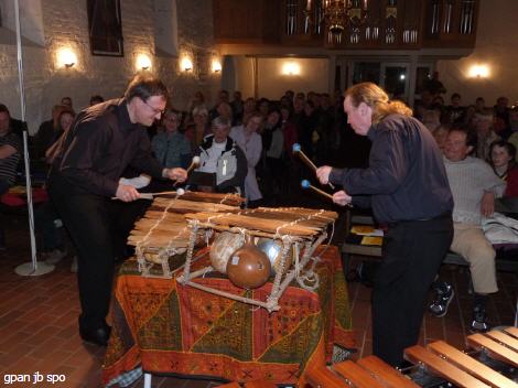 „Es war so toll, es war einmalig, köstlich!“ Dieses beglückende Gefühl musste Ulla Weißinger aus St. Peter-Ording einfach Kirchenmusikdirektor Christoph Jensen anlässlich des gerade gehörten Osterkonzertes mit dem German Marimba Duo in der St. Peter-Kirche am Abend des Ostermontag mitteilen. So wie sie hatten die um die hundert Konzertgäste das empfunden, was Matthias Krohn (*1956) und Andreas Schwarz (*1964) auf ihren beiden Marimbas bzw. den beiden Balafonen musikalisch gezaubert hatten. Der Verein zur Pflege und Förderung der Kirchenmusik hatte zu diesem außergewöhnlichen Ostermusikerklebnis eingeladen.