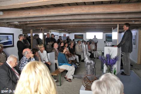 Sein Dank galt allen Helfern und Unterstützern, besonders aber Bürgermeister und Tourismus-Direktor Rainer Balsmeier und seinen Mitarbeitern, „die es durch ihre Kooperationsbereitschaft leicht gemacht haben, auch diese Ausstellung wieder zu organisieren.“ Für die Gemeinde St. Peter-Ording dankte Willi Bahrenfuß mit den Worten „Was hier geschehen ist, ist das Tüpfelchen auf dem i.“ Er hatte den Bogen für Kunst weit gespannt von der Gemeindegalerie bis hin zum „König der Wellen“ von Karl-Friedrich Gotsch vor der Dünen-Therme.
