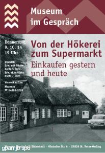 In die Loo des Museums Landschaft Eiderstedt hatte der Verein KulturTreff zu seiner Reihe „Museum im Gespräch“ eingeladen. Von der „Hökerei zum Supermarkt – Einkaufen gestern und heute“ war das Thema. Anwesend waren als Zeitzeugen und Berichterstatter Christa Marwig (*1929) aus ehemals Tümlauer Koog und heute Garding wie Karl-August Johst (*1939) und Marco Pioch (*1977).