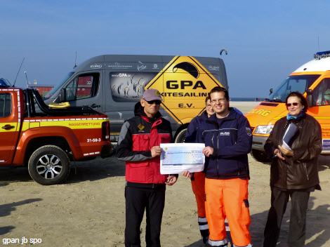 Damit nicht genug, die GPA veranstaltete unter Federführung des Hamburger Kiterstammtisches zwei weitere Aktionen, in denen interessierte Gäste gegen eine freiwillige Spende bei einem erfahrenen Kitebuggypiloten mitfahren konnten. „Für Buggyneulinge wieder eine super Gelegenheit den Buggysport kennenzulernen und für uns eine Möglichkeit die DLRG St. Peter-Ording bei diesem wichtigen Projekt zu unterstützen“, so Jens Ball, Präsident der GPA. Bei diesen drei Aktionen der GPA kam eine Gesamtspendensumme in Höhe von 3.750,- Euro für das