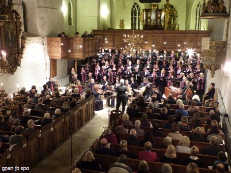 Mit Kantaten für den 1. Weihnachtstag 1753, den Neujahrstag 1741 und zu Epiphanias 1731 sollte es nach der Pause eine Steigerung geben. Dafür sorgten zunächst einmal die vier Pauken – auch als Melodieinstrument, die 2 Hörner in der ersten Kantate und die Trompeten in den letzten beiden Kantaten. Dominik Wörner (Bass) wusste schon von Anfang an durch seine klare, raumfüllende Gestaltung zu überzeugen. Monika Mauch (Sopran) bezauberte mit ihrer schlanken klaren und zu Herzen gehenden Stimme durch makellose Kolloraturen. Georg Polutz (Tenor), lupenrein in den Rezitativen und Duetten, erhielt nun endlich in der letzten Kantate auch seine Arie, begleitet von der virtuos gestaltenden Solovioline der Konzertmeisterin. Das Orchester spielte stets engagiert und klangschön in barocker Manier auf den Affekt des Textes ausgerichtet.