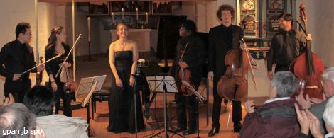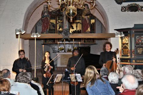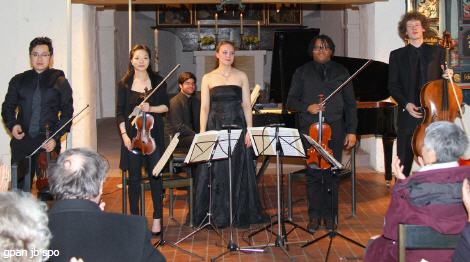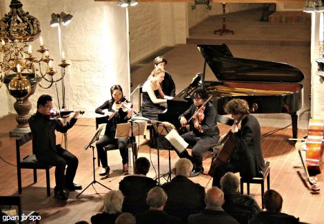Nach dem sich anschließenden Klavierkonzert von Frédéric Chopin hatte Kirchenmusikdirektor Christoph Jensen schon bei seiner Begrüßung eine zehnminütige Pause angekündigt. Wer sich etwa darüber gewundert hatte, der wusste es nach dem zweiten Stück besser. Elisabeth Streichert und auch den anderen Musikern konnte man die Anstrengung, aber auch die Erleichterung über das gelungene Chopin-Werk ansehen. Eine kurze Pause war mehr als sinnvoll, denn das dann folgende brillante und effektvolle Klavierquintett Es-Dur op.44 von Robert Schumann (1810-1856) verlangte wieder volle Konzentration und Einsatz von den Musikern. Belohnt wurde ihr Können durch den überaus dankbaren Applaus des Publikums. Clifton Harrison, Artistic-Director, schrieb am Morgen danach im Internet: „We had a packed audience tonight in Sankt Peter-Ording, Germany!! Amazing concert with amazing colleagues!!“ Ein gelungener Auftakt ihres Aufenthaltes in Deutschland!