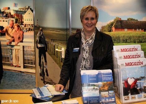 Auch St. Peter-Ording war wieder im Gemeinschaftsstand mit anderen Nordseebädern vertreten. Am Donnerstag war Claudia Nißen von der Marketing- und Veranstaltungsabteilung am Stand und betreute mit ihren anderen Kolleginnen die zahlreichen interessierten Besucher. Da mehr als ein Drittel der Bevölkerung sich jetzt schon sicher ist, einen Urlaub in 2013 zu machen, lohnte es sich allemal, die Gäste zu beraten und sie in ihrem Vorhaben zu bestärken, denn schließlich kommen zu der Messe gerade die hoch motvierten künftigen Reisenden. Die direkte Ansprache, der persönliche Kontakt, die Möglichkeit nachfragen zu können, sich etwas schildern zu lassen, das alles verstärkt den Eindruck, den die meisten schon aus Prospekten, Bildern oder dem Internet gewonnen haben und wird sie bestärken, zu uns zu kommen.