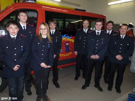 Wie gut, dass für all diese Unternehmungen das Jugendmobil 2012 in Betrieb genommen werden konnte. Ohne jegliche öffentlichen Mittel wurden dafür die erforderlichen 28.000 Euro gesammelt. Den Riesenbatzen von insgesamt 16.000 Euro lieferte dabei die Sammelaktion 2011 beim Konzert der Big Band der Bundeswehr mit zusätzlichen Spenden. Aber die restlichen 12.000 Euro mussten auch noch erst ersammelt werden. Für diese riesige Spendenbereitschaft und auch die im vergangenen Jahr für die Arbeit erfolgten Spenden und Zuwendungen in Höhe von über 2.800 Euro bedankte sich Felix Korupp in seinem Bericht noch einmal ausdrücklich. Einen besonderen Dank richtete er an Wehrführer Norbert Bies für die Freiwillige Feuerwehr und die Kameraden Tobias Thomsen und Toni Thurm, ihren Jugendfeuerwehrwart mit seinem Vertreter. Dabei vergaß er auch Charlin Schnering und Andre Loerke nicht, die als ehemals Mitglieder der Jugendwehr nun als Feuerwehrleute mit in die Ausbildung eingestiegen sind.