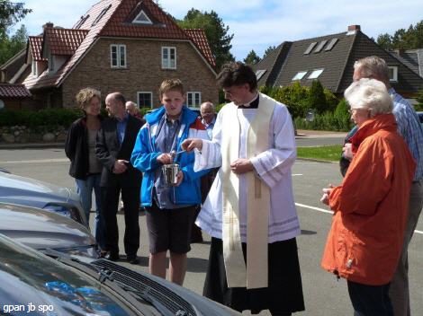Die katholische Kirchengemeinde St. Ulrich in St. Peter-Ording hatte am Sonntagnachmittag zu einer Andacht mit Fahrzeugsegnung eingeladen. Sie richtete sich an alle, die in Urlaub fahren wollen oder ihre Ferien in der Region verbringen wie auch an diejenigen, die ein Fahrzeug benutzen und um sichere Fahrt bitten wollen.