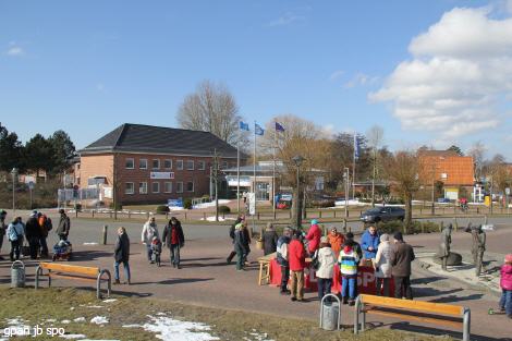 "Eiskalt" verteilten Mitglieder des SPD-Ortsvereins wieder einmal am Markttag vor Ostern Eier und einen Flyer an Bürger und Gäste. Eiseskälte brachte das Hoch über Skandinavien nun schon seit vielen Tagen an die Westküste. Bei dem starken Wind fühlte sich die Temperatur extrem kalt an, auch wenn die Sonne Frühlingsgefühle wach werden ließ.