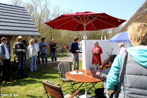 Viele Gäste sind ihrer Einladung zur Vernissage gefolgt. Zum dritten Mal gibt es nun eine solche gelungene Skulpturenausstellung am Norderdeich. Als Gastgeber haben Sibille Rehder und Thomas Bartram mit den Künstlern alles trefflich vorbereitet und ein Ambiente geschaffen, das nicht nur an diesem ersten Maisonnabend bei Kaffee, Tee und Kuchen sondern bis 1. September zu einem Besuch und zum Schauen und Verweilen in der Skulpturenausstellung einlädt.