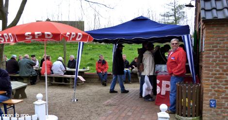 An Himmelfahrt dann veranstaltete der SPD Ortsverein dort sein traditionelles „Schinkenessen“. Seit einigen Jahren findet es beim Backhaus statt und erfreute sich auch dieses Jahr eines guten Zuspruchs. Der Reinerlös wird dieses Mal für die Neugestaltung des Schulhofs des Gymnasialteils der Nordseeschule gespendet.