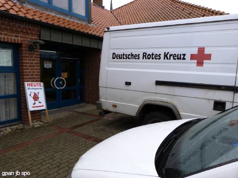 Am Montag, 09. September 2013, war es wieder so weit. Ein Team des DRK Blutspendedienstes Nord für Hamburg und Schleswig-Holstein war von der Zentrale aus Lütjensee (Kreis Stormarn) am frühen Nachmittag in St. Peter-Ording gemäß Absprache mit dem DRK Ortsverein St. Peter-Ording beim Ev. Gemeindezentrum in der Olsdorfer Straße eingetroffen. Die neun Mitarbeiter des DRK - ein Arzt und fünf Schwestern sowie drei weitere Kräfte – hatten dann alles für den um 16:00 Uhr beginnenden Blutspendetermin eingerichtet. Das gleiche galt auch für die 13 ehrenamtlichen Helferinnen und Helfer des Ortsvereins, denn er hat die Verantwortung für den reibungslosen Ablauf an diesem Tag. Die einzelnen Stationen mussten vorbereitet werden, Besorgungen gemacht und schmackhafte Brote für den Imbiss geschmiert werden. Auch Lauch-Creme-Suppe sowie Kaffee und Kuchen sollten die Spender erhalten können.