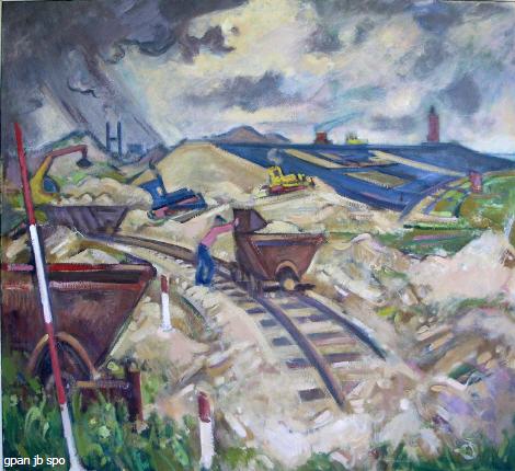 „Deichbaustelle Bad“, 1952/87 Öl/Hartfaserplatte (90,5*101,5) -